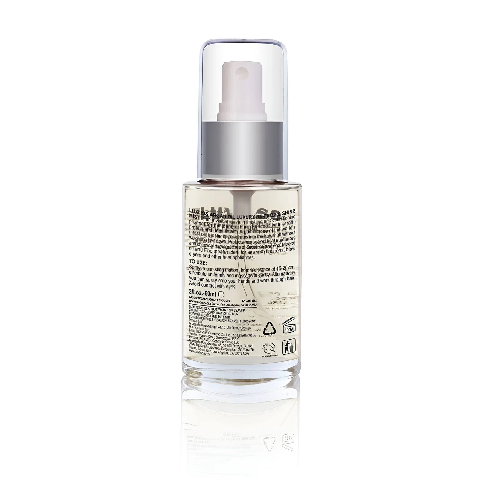 Невидим несмиваем завършващ и подхранващ продукт за интензивен блясък. Обогатен с кератинов протеин и арганово масло (едно от най-редките масла в света), спреят мигновено прониква в косъма, без да утежнява косата. Защитава от топлинни уреди и химически увреждания. Не съдържа сулфати, парабени, минерални масла и фосфати. Идеален за използване с преса, сешоар и други термични уреди.